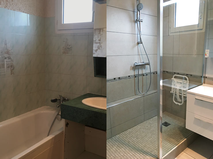 Nous prenons en charge la dépose de votre ancienne salle de bains ainsi que l'enlèvement des gravats.