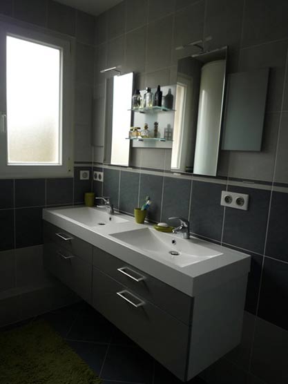Nous nous chargeons de la réimplantation de votre nouvelle salle de bains, de la réfection de l’ensemble des canalisations, des éléments de cloison nécessaires à son réaménagement, du suivi de la fourniture, de la pose de l’ensemble de vos sanitaires ainsi que l’ensemble des revêtements muraux et de sol.